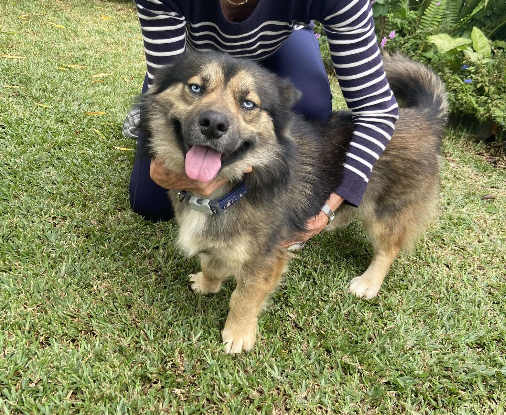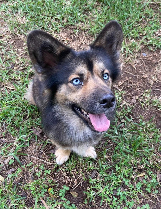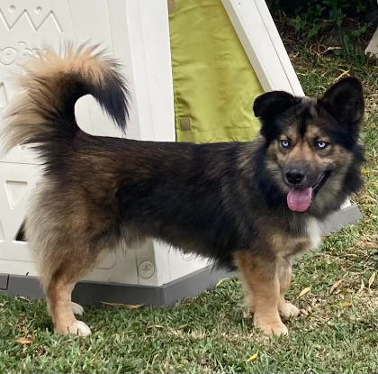 SKY est issu d'un croisement bien à lui ! Il est de petit gabarit avec des airs de berger aux yeux bleus !