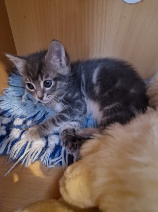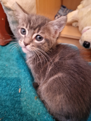 Je m'appelle Arabesque. J'ai 2 mois. Je suis une gentille chatonne de 2 mois qui vit en famille d'accueil avec mes 3 frères et sœurs et ma maman.