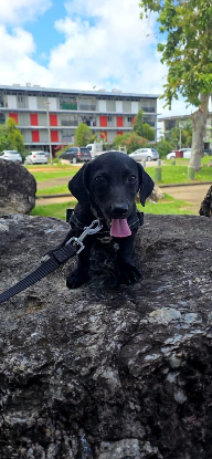 Plein de vie, il a beaucoup d’amour à donner, c’est un chiot câlin.