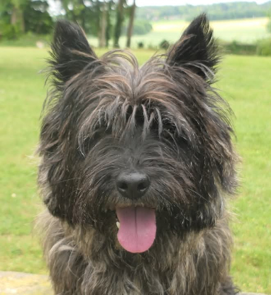 Oona est une petite chienne de race cairn terrier très active et joyeuse. A l'aise avec les humains, elle est habituée également à la présence d'enfants. Elle vivait avec un autre chien plus âgé par contre elle n'apprécie pas la présence des chats. Elle est propre en intérieur et supporte de rester seule. Elle se comporte très bien en voiture. Elle devra impérativement vivre à la campagne, elle est très mal à l'aise en ville et se montre réactive sur les véhicules et les autres chiens lorsqu'elle est en laisse. En liberté, elle est sociable avec ces derniers. Idéale pour une vie avec des jeunes retraités actifs.