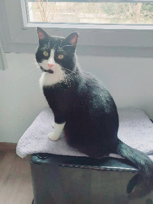 Moi, c’est Bruce Wayne, un magnifique chat noir et blanc d’environ 3 ans.
