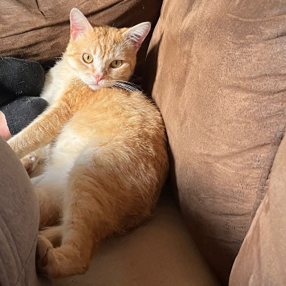 Ginger est un tout jeune adulte de deux ans environ. Ginger est un chat adorable et très pot de colle : il vous suivra partout dans la maison, dans toutes vos tâches quotidiennes. Pour faire ses siestes, il choisira des coins douillets (sur vous de préférence). La nuit, il dormira avec vous. C’est un chat très attachant, très câlin : une véritable machine à ronron. Ginger est le chat idéal, c’est une crème. Il est aussi joueur et gourmand.