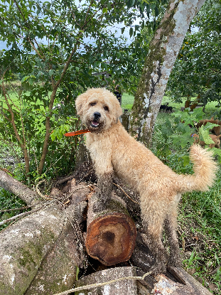Patos est un beau croisé caniche de 1 an, né le 01/04/2024. Il fait 13 ,80 kilos et a sa taille adulte. Avant son arrivée au refuge DOGGY OASIS INTERNATIONAL, Patos a été trouvé aux abords d’une route dangereuse, seul.