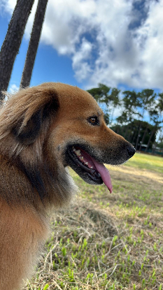 Il est sociable congénères, ne pose aucun souci au refuge et participe aux balades avec plaisir.