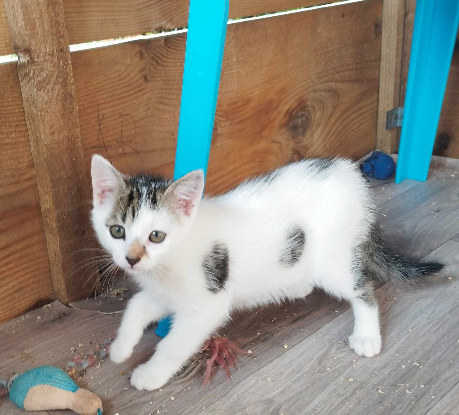 Nichés au milieu des herbes d'une maison inhabitée, ils ont failli passer sous une débroussailleuse. Heureusement que Anthony a repéré rapidement cette petite masse blanche qui bougeait, ils n'avaient alors que 3-4 semaines environ.