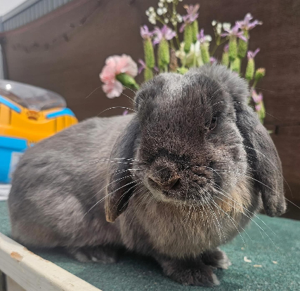 C'est une lapine qui porte parfaitement son prénom ! Elle est très proche de sa tata, toujours en demande d'attention et de câlins ?