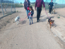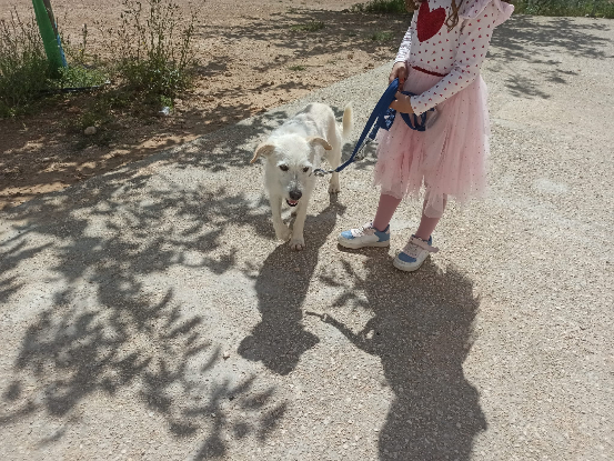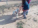 En promenade il marche bien en laisse et ne tire pas, il accepte les gens et surtout les enfants.