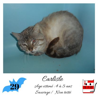 URGENCE EUTHANASIE ! Carlisle est un mâle de 4-5 ans sauvageon (un comportement normal en fourrière) qui vous attend dans une fourrière du 29. ATTENTION SORTIE AU PLUS TARD LE 11/09/2020 (avant euthanasie) ! Pour adopter, c'est facile : ➡️ On se rend sur la page facebook d'Urgence Fourrière de Bretagne (UFB) -> https://www.facebook.com/sosfourrieresbreizh/ ➡️ On vient en message privé sur la page UFB ➡️ On remplit le questionnaire ➡️ Si le questionnaire est validé, on se rend disponible pour la pré-visite ➡️ On se rend aussi disponible pour venir chercher le loulou en fourrière Les chats sortent de fourrière primo-vaccinés et identifiés. Restera à charge de l’adoptant le rappel de vaccin et la stérilisation qui est OBLIGATOIRE. Les femelles en fourrière ayant été trouvées dans la rue, il y a fort à parier que nombre d'entre elles en âge de l'être soient gestantes ... ---- A PROPOS D'URGENCE FOURRIERE DE BRETAGNE (UFB) Nous sommes un COLLECTIF d'ASSOCIATIONS DE PROTECTION ANIMALE (qui rassemble notamment Moustaches et Compagnie, Bêtes de Scène, les Pachas, Chats Libres de Berné, etc, etc....) Le BUT de ce collectif d'associations est donc de SORTIR ces animaux des fourrières surchargées en les faisant ADOPTER de manière LEGALE par des familles ou en leur trouvant des FAMILLES D'ACCUEIL lorsque des places en association se libèrent.