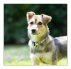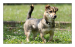 Très Sociable, elle s'entend avec les chiens, chats, poules. Les grands chiens l'impressionnent pour le moment.