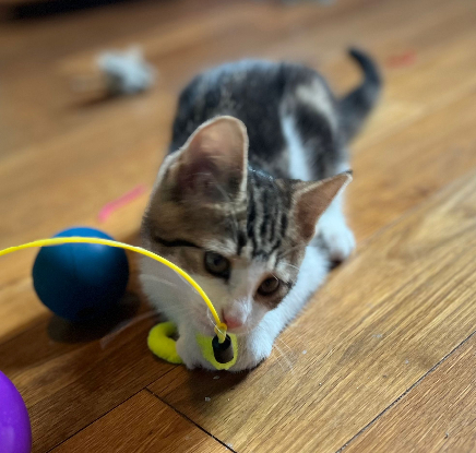 Mim's et son frère Miaouss ont été biberonnés et ont grandi dans un foyer chaleureux sous la protection du chien de la famille d'accueil.