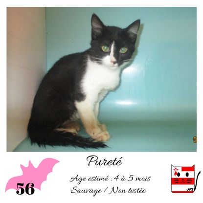 URGENCE EUTHANASIE ! Pureté est une femelle de 4-5 mois sauvageonne (un comportement normal en fourrière) qui vous attend dans une fourrière du 56. ATTENTION SORTIE AU PLUS TARD LE 11/09/2020 (avant euthanasie) ! Pour adopter, c'est facile : ➡️ On se rend sur la page facebook d'Urgence Fourrière de Bretagne (UFB) -> https://www.facebook.com/sosfourrieresbreizh/ ➡️ On vient en message privé sur la page UFB ➡️ On remplit le questionnaire ➡️ Si le questionnaire est validé, on se rend disponible pour la pré-visite ➡️ On se rend aussi disponible pour venir chercher le loulou en fourrière Les chats sortent de fourrière primo-vaccinés et identifiés. Restera à charge de l’adoptant le rappel de vaccin et la stérilisation qui est OBLIGATOIRE. Les femelles en fourrière ayant été trouvées dans la rue, il y a fort à parier que nombre d'entre elles en âge de l'être soient gestantes ... ---- A PROPOS D'URGENCE FOURRIERE DE BRETAGNE (UFB) Nous sommes un COLLECTIF d'ASSOCIATIONS DE PROTECTION ANIMALE (qui rassemble notamment Moustaches et Compagnie, Bêtes de Scène, les Pachas, Chats Libres de Berné, etc, etc....) Le BUT de ce collectif d'associations est donc de SORTIR ces animaux des fourrières surchargées en les faisant ADOPTER de manière LEGALE par des familles ou en leur trouvant des FAMILLES D'ACCUEIL lorsque des places en association se libèrent.