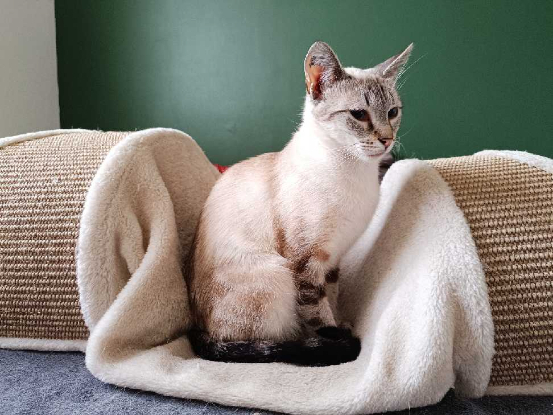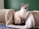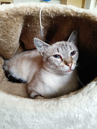 Je m'appelle Azia. Je suis une petite chatte siamoise de 2 ans, un peu timide mais très douce et très calme et je souhaite trouver un foyer qui me ressemble. Je peux rester seule de longs moments quand mes maîtres sont au travail parce que je sais m'occuper en jouant. J'aime les dodos douillets et je suis gourmande.