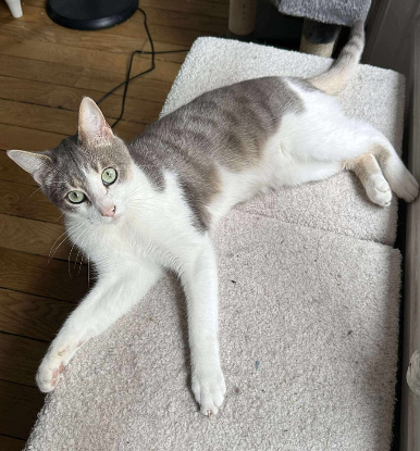 C’est un chat très calin qui viendra volontiers se mettre sur vos genoux sur le canapé, ou à vos pieds au lit la nuit.