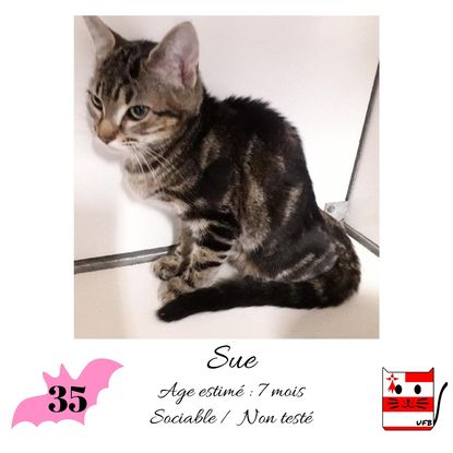 URGENCE EUTHANASIE ! Sue est une femelle de 7 mois sociable qui vous attend dans une fourrière du 35. ATTENTION SORTIE AU PLUS TARD LE 11/09/2020 (avant euthanasie) ! Pour adopter, c'est facile : ➡️ On se rend sur la page facebook d'Urgence Fourrière de Bretagne (UFB) -> https://www.facebook.com/sosfourrieresbreizh/ ➡️ On vient en message privé sur la page UFB ➡️ On remplit le questionnaire ➡️ Si le questionnaire est validé, on se rend disponible pour la pré-visite ➡️ On se rend aussi disponible pour venir chercher le loulou en fourrière Les chats sortent de fourrière primo-vaccinés et identifiés. Restera à charge de l’adoptant le rappel de vaccin et la stérilisation qui est OBLIGATOIRE. Les femelles en fourrière ayant été trouvées dans la rue, il y a fort à parier que nombre d'entre elles en âge de l'être soient gestantes ... ---- A PROPOS D'URGENCE FOURRIERE DE BRETAGNE (UFB) Nous sommes un COLLECTIF d'ASSOCIATIONS DE PROTECTION ANIMALE (qui rassemble notamment Moustaches et Compagnie, Bêtes de Scène, les Pachas, Chats Libres de Berné, etc, etc....) Le BUT de ce collectif d'associations est donc de SORTIR ces animaux des fourrières surchargées en les faisant ADOPTER de manière LEGALE par des familles ou en leur trouvant des FAMILLES D'ACCUEIL lorsque des places en association se libèrent.