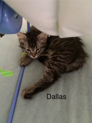 Dallas est joueur, curieux, timide quand il ne connait pas mais avec quelques jours de patience, des friandises et des jeux, il sera un parfait chat de famille.