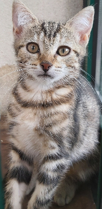 Petite chatonne de 2 mois 1/2, vive et curieuse, intelligente et affectueuse, elle est proche de l’humain. On a envie de la dorloter et nous cherchons pour elle une famille bienveillante.