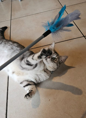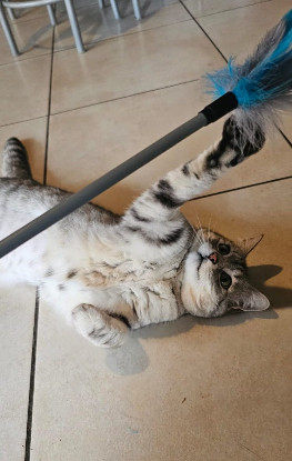 Il aime par dessus tout dormir près de ses humains et jouer avec tout ce qu’on lui propose.