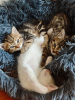 Voici Hécate, une petite chatonne fine et gracieuse, au regard malicieux et au pelage unique. Son corps est orné de jolies tâches façon panthère, qui lui donnent l’élégance d’un félin sauvage… en version miniature ! Elle est plus menue que son frère Zeus et sa sœur Perséphone, mais elle n’en a pas moins de caractère ni de charme.