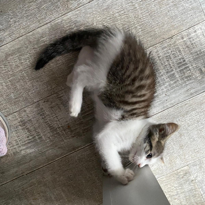 Elle m’a bien gardé pendant quelques semaines, on rigolait ,on jouait, c’était bien... en tout cas pour moi, sauf que aujourd’hui la tata se rend compte que pour elle, c’est pas si bien que ça d’avoir un chat, qu’il faut s’en occuper.