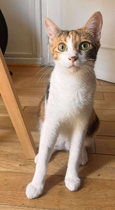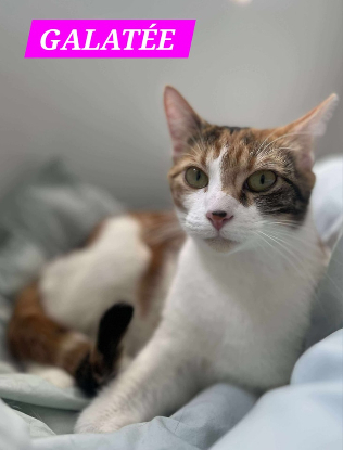 Galatée est une minette d’une douceur incroyable et toujours en quête de tendresse. Elle adore les câlins, et réclame volontiers caresses et moments de douceur. Elle aime se poser au soleil, jouer calmement avec son petit ballon, puis s’endormir paisiblement au bord du lit. Curieuse et délicate, elle explore chaque nouvel objet avec attention, comme si chaque chose qui entre dans la maison était un cadeau rien que pour elle.Un peu réservée au début, elle prend rapidement confiance et saura te montrer, à sa manière douce et tranquille, tout ce qu’elle aime. Galatée est une petite reine sensible et affectueuse, qui attend simplement un foyer chaleureux pour partager amour, calme et complicité.