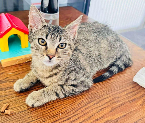 Je suis un adorable petit mâle tigré de 4 mois environ, récupéré dans la rue après avoir été abandonné.