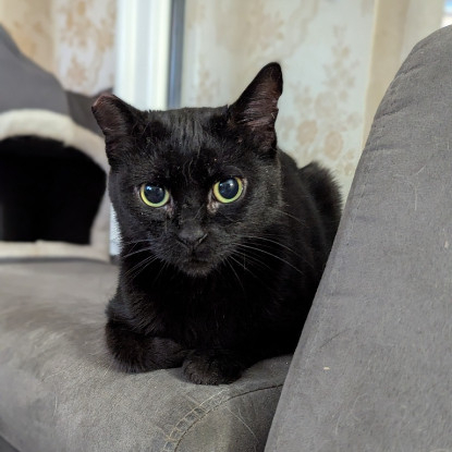 Gaëlle est le chat idéal pour une vie d'appartement. Les petits espaces ne la dérangent pas tant qu'elle est auprès de vous. Si vous avez un petit placard à lui accorder, elle sera la plus heureuse. ?