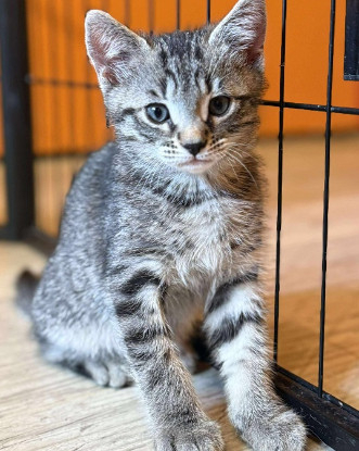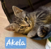 Il se révèle être un chaton très observateur. Il observe de loin puis approche une fois en confiance. Il adore les parties de jeux avec ses frères et sœurs et dormir sur l’arbre à chat. Son jeux préféré c’est le tunnel, se cacher et bondir. Akela est un chaton doux qui se pose facilement. Il aura plaisir à jouer avec vous.