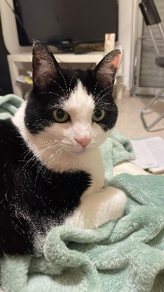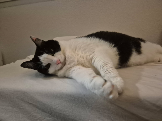 Elle vient tout les matins au visage de sa famille d’accueil pour faire des petits bisous et miaule une fois comme pour dire « aller c’est l’heure de se lever ». Si l'on ne se lève pas, elle n’insiste pas et retourne dormir aussi.