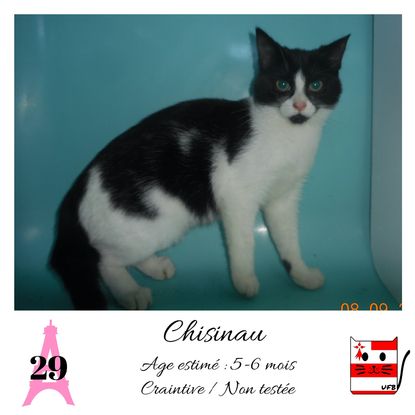 URGENCE EUTHANASIE ! Chisinau est une femelle de 5-6 mois craintive (un comportement normal en fourrière) qui vous attend dans une fourrière du 29. ATTENTION SORTIE AU PLUS TARD LE 18/09/2020 (avant euthanasie) ! Pour adopter, c'est facile : ➡️ On se rend sur la page facebook d'Urgence Fourrière de Bretagne (UFB) -> https://www.facebook.com/sosfourrieresbreizh/ ➡️ On vient en message privé sur la page UFB ➡️ On remplit le questionnaire ➡️ Si le questionnaire est validé, on se rend disponible pour la pré-visite ➡️ On se rend aussi disponible pour venir chercher le loulou en fourrière Les chats sortent de fourrière primo-vaccinés et identifiés. Restera à charge de l’adoptant le rappel de vaccin et la stérilisation qui est OBLIGATOIRE. Les femelles en fourrière ayant été trouvées dans la rue, il y a fort à parier que nombre d'entre elles en âge de l'être soient gestantes ... ---- A PROPOS D'URGENCE FOURRIERE DE BRETAGNE (UFB) Nous sommes un COLLECTIF d'ASSOCIATIONS DE PROTECTION ANIMALE (qui rassemble notamment Moustaches et Compagnie, Bêtes de Scène, les Pachas, Chats Libres de Berné, etc, etc....) Le BUT de ce collectif d'associations est donc de SORTIR ces animaux des fourrières surchargées en les faisant ADOPTER de manière LEGALE par des familles ou en leur trouvant des FAMILLES D'ACCUEIL lorsque des places en association se libèrent.