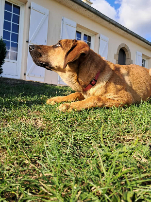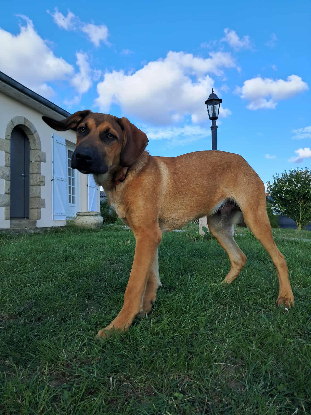 Côté sociabilité, Aristote s’entend bien avec les enfants, les chevaux, et peut cohabiter avec des chiens ou des chats, à condition que les présentations soient bien faites. Il n’a pas nécessairement besoin d’un autre chien pour s’épanouir, mais un compagnon équilibré pourrait l’aider à prendre ses marques plus rapidement. Il progresse chaque jour en éducation et même si la marche en laisse reste à perfectionner, il est volontaire et apprend vite... sauf quand il s’agit de résister à la tentation des chaussures !
