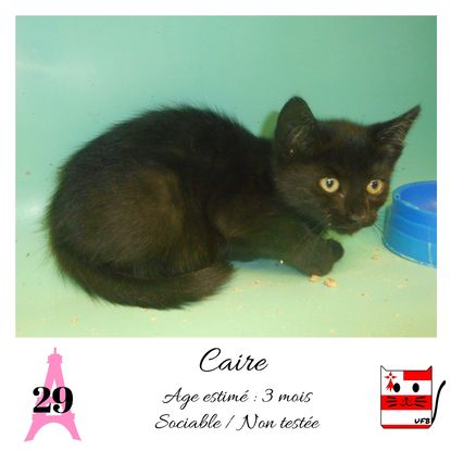 URGENCE EUTHANASIE ! Caire est une femelle de 3 mois sociable qui vous attend dans une fourrière du 29. ATTENTION SORTIE AU PLUS TARD LE 18/09/2020 (avant euthanasie) ! Pour adopter, c'est facile : ➡️ On se rend sur la page facebook d'Urgence Fourrière de Bretagne (UFB) -> https://www.facebook.com/sosfourrieresbreizh/ ➡️ On vient en message privé sur la page UFB ➡️ On remplit le questionnaire ➡️ Si le questionnaire est validé, on se rend disponible pour la pré-visite ➡️ On se rend aussi disponible pour venir chercher le loulou en fourrière Les chats sortent de fourrière primo-vaccinés et identifiés. Restera à charge de l’adoptant le rappel de vaccin et la stérilisation qui est OBLIGATOIRE. Les femelles en fourrière ayant été trouvées dans la rue, il y a fort à parier que nombre d'entre elles en âge de l'être soient gestantes ... ---- A PROPOS D'URGENCE FOURRIERE DE BRETAGNE (UFB) Nous sommes un COLLECTIF d'ASSOCIATIONS DE PROTECTION ANIMALE (qui rassemble notamment Moustaches et Compagnie, Bêtes de Scène, les Pachas, Chats Libres de Berné, etc, etc....) Le BUT de ce collectif d'associations est donc de SORTIR ces animaux des fourrières surchargées en les faisant ADOPTER de manière LEGALE par des familles ou en leur trouvant des FAMILLES D'ACCUEIL lorsque des places en association se libèrent.