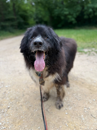 Je suis donc un grand chien puisque je suis croisé terre neuve et j'ai environ 8,5 ans. Et ma présentation va être rapide, je suis au top du top ! ❤