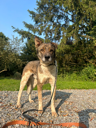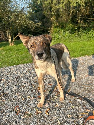 Mon début de vie a été compliqué... Je suis né dans la rue en Roumanie et le 31 juillet 2023 j'ai été attrapé par les dog-catchers et envoyé à la fourrière... J'y ai passé 22 mois et je ne sais combien de fois j'ai échappé à l'euthanasie ! Au début je restais caché dans ma niche mais lorsque j'en suis sorti j'ai étonné tout le monde car en fait je suis super sympa ! J'avais juste très peur de ce nouvel environnement qui, avouons-le, ne met pas vraiment en confiance... Océane m'a vu quand elle est venu en août 2024 et j'ai eu la chance de venir les rejoindre, elle et Lisa, au mois de mai 2025 ?