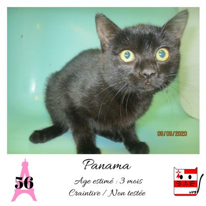 URGENCE EUTHANASIE ! Panama est une femelle de 3 mois craintive (un comportement normal en fourrière) qui vous attend dans une fourrière du 56. ATTENTION SORTIE AU PLUS TARD LE 18/09/2020 (avant euthanasie) ! Pour adopter, c'est facile : ➡️ On se rend sur la page facebook d'Urgence Fourrière de Bretagne (UFB) -> https://www.facebook.com/sosfourrieresbreizh/ ➡️ On vient en message privé sur la page UFB ➡️ On remplit le questionnaire ➡️ Si le questionnaire est validé, on se rend disponible pour la pré-visite ➡️ On se rend aussi disponible pour venir chercher le loulou en fourrière Les chats sortent de fourrière primo-vaccinés et identifiés. Restera à charge de l’adoptant le rappel de vaccin et la stérilisation qui est OBLIGATOIRE. Les femelles en fourrière ayant été trouvées dans la rue, il y a fort à parier que nombre d'entre elles en âge de l'être soient gestantes ... ---- A PROPOS D'URGENCE FOURRIERE DE BRETAGNE (UFB) Nous sommes un COLLECTIF d'ASSOCIATIONS DE PROTECTION ANIMALE (qui rassemble notamment Moustaches et Compagnie, Bêtes de Scène, les Pachas, Chats Libres de Berné, etc, etc....) Le BUT de ce collectif d'associations est donc de SORTIR ces animaux des fourrières surchargées en les faisant ADOPTER de manière LEGALE par des familles ou en leur trouvant des FAMILLES D'ACCUEIL lorsque des places en association se libèrent.