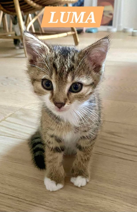 Luma est une boule d’énergie, toujours en mouvement. C’est la plus sociable de la fratrie. Très curieuse, elle adore découvrir tout ce qui l’entoure et n’a peur de rien. Même si elle est dynamique, Luma adore aussi les gratouilles derrière la nuque. Elle se laisse porter très facilement et montre déjà une belle confiance.