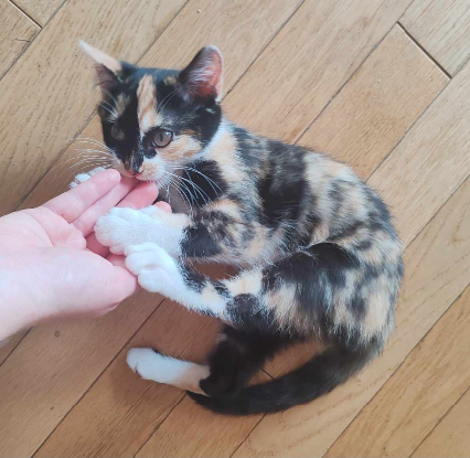 Mais une fois sortie de sa cachette, elle s’est rapidement révélée : câline, joueuse, et surtout… une vraie machine à ronronner !