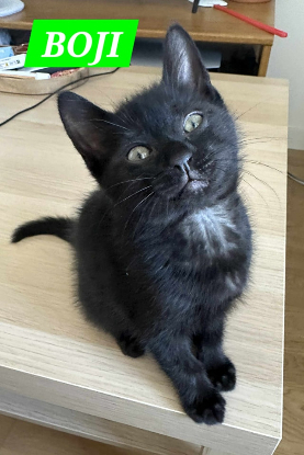 Boji est le plus bavard de tous, avec ses miaulements uniques, un peu “crunchy”, qui ne laissent personne indifférent ! Très affectueux et sage, il aime les moments calmes et les câlins. C’est un chaton posé, qui conviendra parfaitement à une famille tranquille ou à une personne cherchant un compagnon affectueux ! Il est également joueur lorsqu'il est accompagné de ses frères et/ou soeurs. C'est une petite boule de néant toute mimi qui viendra souvent vous voir et se poser contre vous.