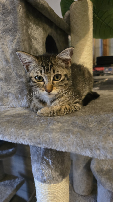 Jolie petite femelle de 2 mois ½, BELLA, dans son habit de tigresse, est calme et douce. Elle fera votre bonheur si vous voulez un petit animal tendre et proche de vous.