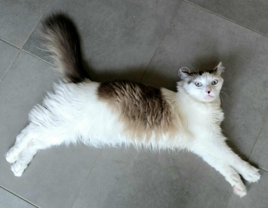 Joueur avec ses grosses patounes toutes douces (sans sortir les griffes), il s’entend bien avec les humains comme avec les autres chats. Un compagnon de jeu serait un vrai plus pour lui permettre de se dépenser.