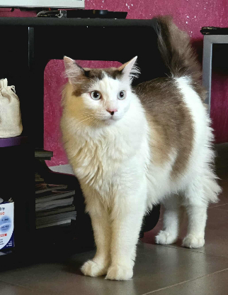 Il s'adapte facilement à un nouvel environnement et devient même très câlin une fois en confiance : ronrons, patounes et moments tendres garantis ! Gourmand et curieux, il appréciera quelques friandises pour créer du lien et viendra vous les demander avec "rmaou" tout en douceur.