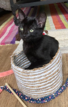 Eyo est un adorable chaton noir tout doux et très affectueux