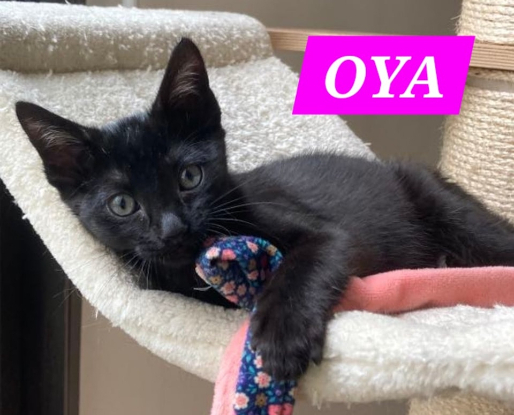 Oya est une adorable chatonne toute douce et toute noire avec sa petit tache blanche