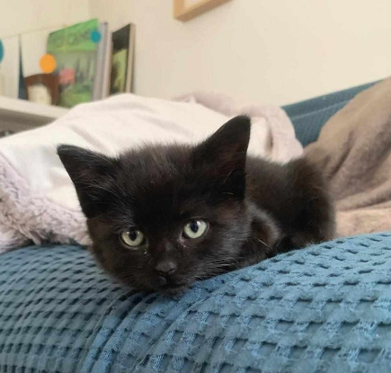 Femelle – pelage noire. Avec sa tête toute ronde et son poil tout doux, elle ressemble à une petite peluche. Elle est gourmande, câline mais également joueuse. Elle se mettra très rapidement à ronronner dès la 1ère caresse. Elle est capable de s’endormir partout à n’importe quel moment. Propre