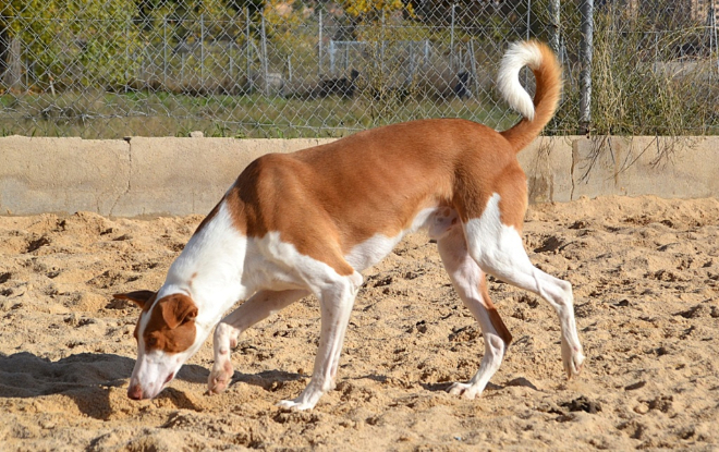 Comme beaucoup de podencos, Lenin est un grand timide, mais jamais agressif. Il ne se laissait même pas toucher à son arrivée.