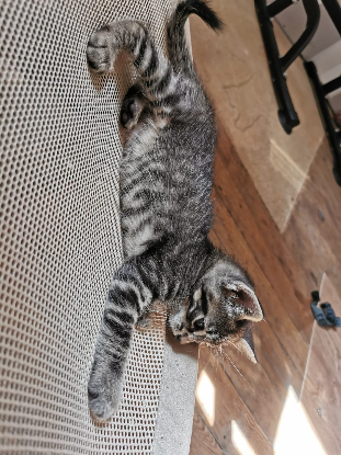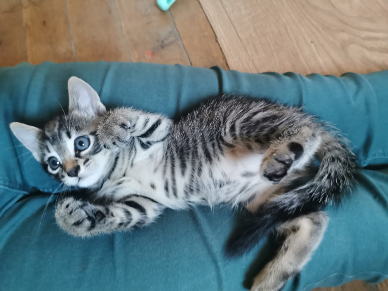 Je suis né avec mon frère et ma sœur sur l'étagère d'un garage suite à l'abandon de ma maman. Très vite nous avons été recueilli tous les 4 par une famille qui nous a permis de grandir en sécurité auprès de notre maman.