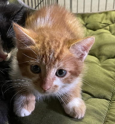 Abricot est un adorable chaton male roux d'environ 1,5 mois, récupéré avec ses 4 frères et soeurs dans un terrain proche des maisons.