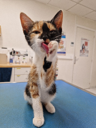 Trouvée seule dans la rue, elle a su s'adapter très vite. Elle est très facile à vivre, câline mais pas pot de colle, gourmande mais pas voleuse.