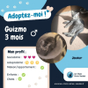 Guizmo est adoptable sous contrat associatif, et certificat d’engagement et de connaissance.