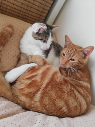 C'est aujourd'hui un jeune chat très affectueux, en demande de câlins, curieux, joueur, gourmand.