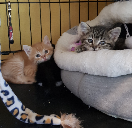 Les petits avaient environ 4 semaines. C'est trop tôt, bien sûr, mais nous n'avions pas le choix. Les voilà bien installés chez leur nounou à Saint Just Chaleyssin. Ils ne seront pas adoptables avant mi Aout mais on commence à vous présenter leurs jolies petites bouilles.